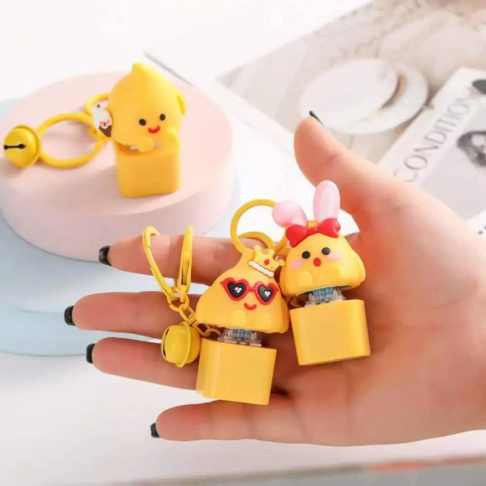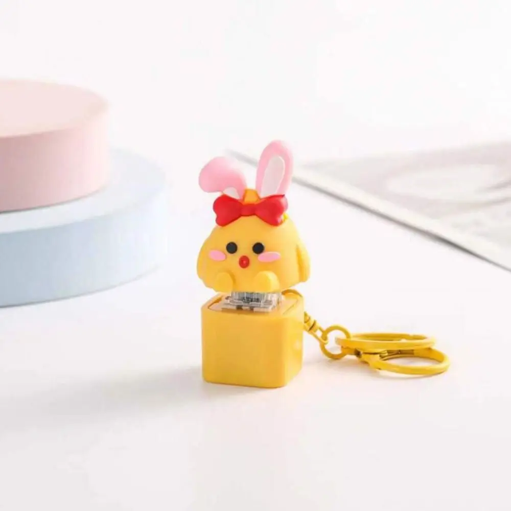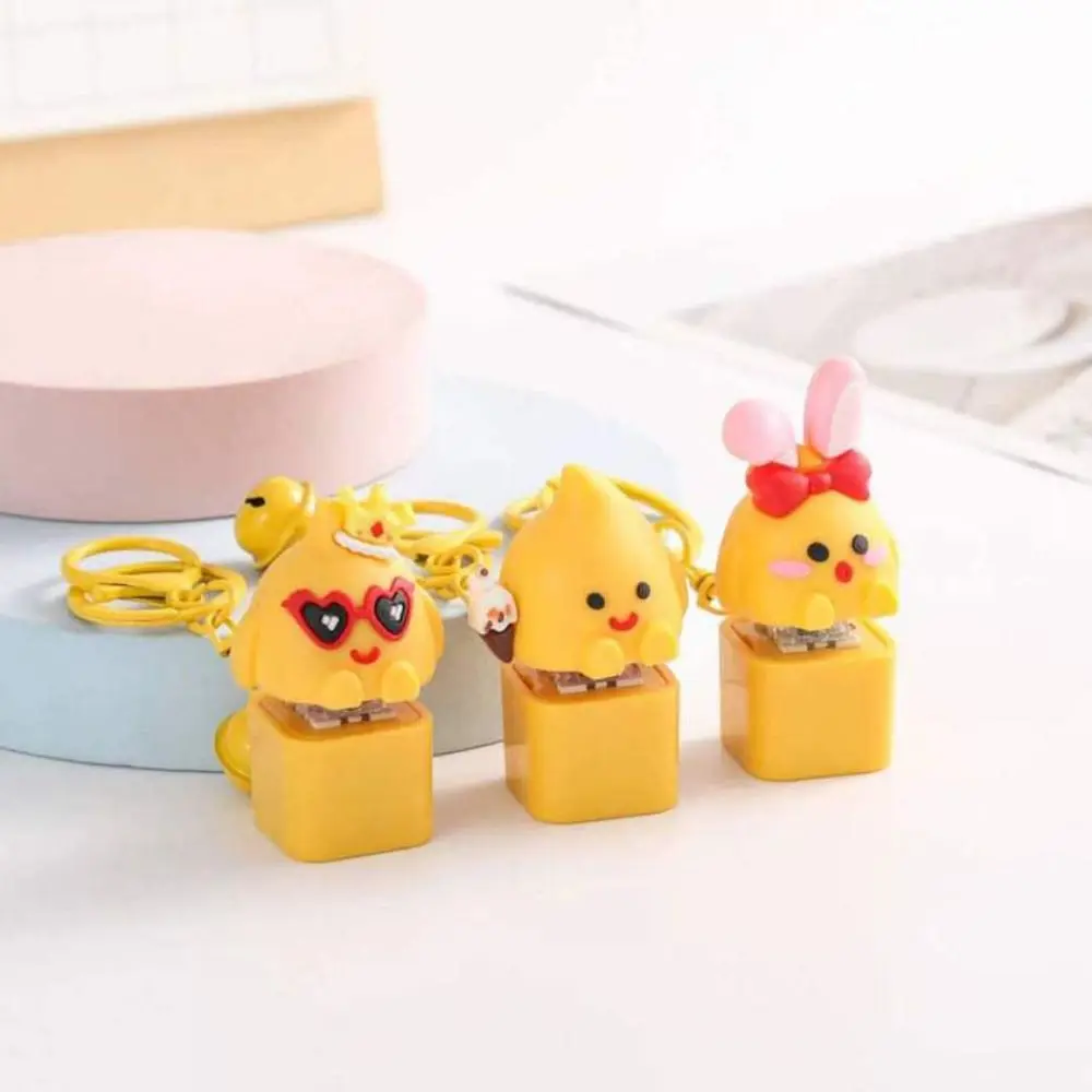Yellow Chick Wooden Fish Keyboard Keychain Luminous Electronic Mechanical Keyboard Keychain Merit +1 Colorful Light